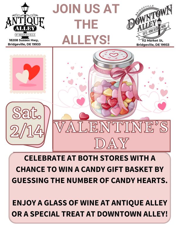 Antique Alley of Bridgeville has been part of the local community for over 20 years. Our climate-controlled antique shop is a 20,000+ square foot antique mall that has over 125 booths and 70 different dealers offering a unique antique and treasure hunting experience. You can’t find anything else like it in the Sussex County area!