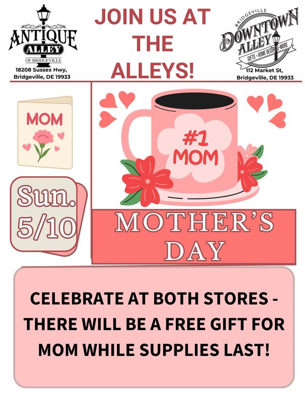 Antique Alley of Bridgeville has been part of the local community for over 20 years. Our climate-controlled antique shop is a 20,000+ square foot antique mall that has over 125 booths and 70 different dealers offering a unique antique and treasure hunting experience. You can’t find anything else like it in the Sussex County area!